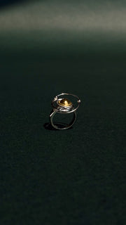 The Solstice Ring is a sculptural standout with a futuristic soul. Featuring a radiant gold dome set in a silver-tone celestial frame, this piece is all about contrast, clarity, and confidence. Designed to represent cycles of renewal and personal gravity, it’s the kind of ring that doesn't just accessorize, it commands.