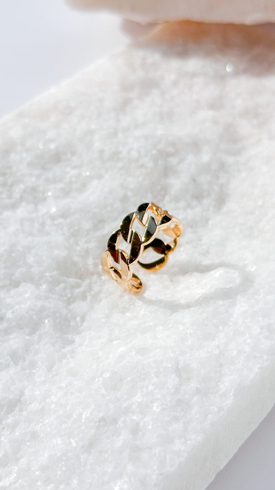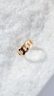 Elevate your style with our must-have Valencia Ring from our staple collection. Its braided Cuban Link chain design adds a touch of classic elegance to any outfit. Fully adjustable for a perfect fit, this ring is a must-have for any fashion-forward individual.