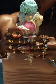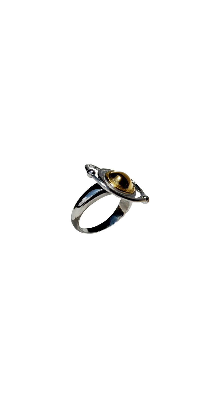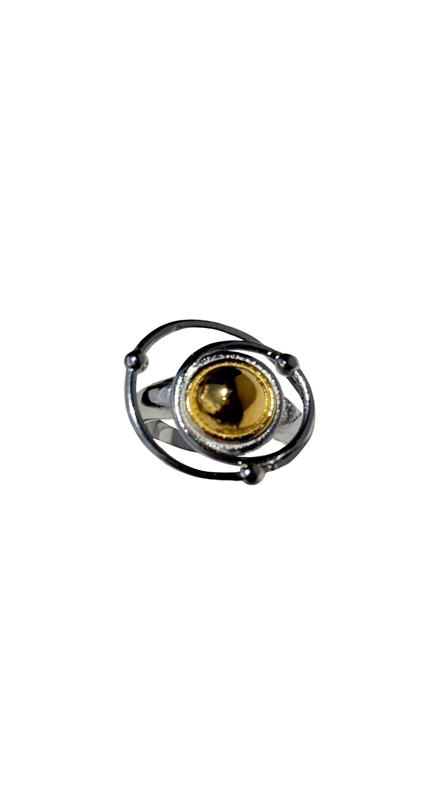 The Solstice Ring is a sculptural standout with a futuristic soul. Featuring a radiant gold dome set in a silver-tone celestial frame, this piece is all about contrast, clarity, and confidence. Designed to represent cycles of renewal and personal gravity, it’s the kind of ring that doesn't just accessorize, it commands.